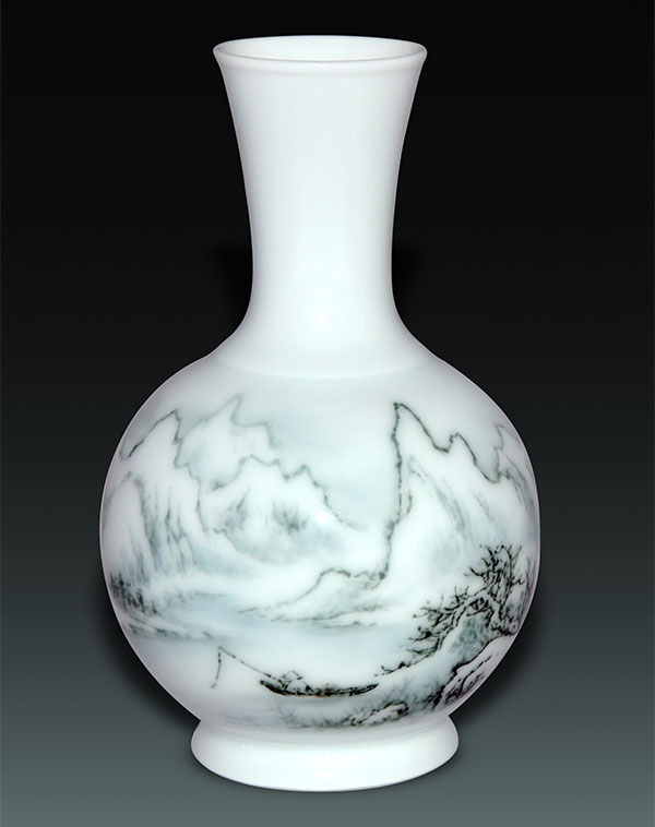 作品名稱:《寒江獨(dú)釣》天球瓶