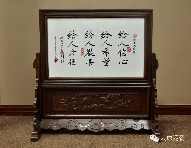 《春滿人間》雙面瓷板畫,由著名旅美畫家李自健所作,以星云大師為題材的雙面瓷板畫,瓷板畫的另一面燒制的是星云大師親筆題名的佛光人工作信條——“給人信心、給人歡喜、給人希望、給人信心”。瓷板畫最大尺經(jīng),高:67厘米,寬:66厘米。《春滿人間》雙面瓷板畫由李自健老師同意授權(quán)給湖南大球泥瓷藝有限公司制作,共燒制五塊,其中第一塊瓷板畫贈送給星云大師,另外一塊被湖南知名醫(yī)藥企林老板收藏。目前,瓷板畫現(xiàn)有保存三塊。