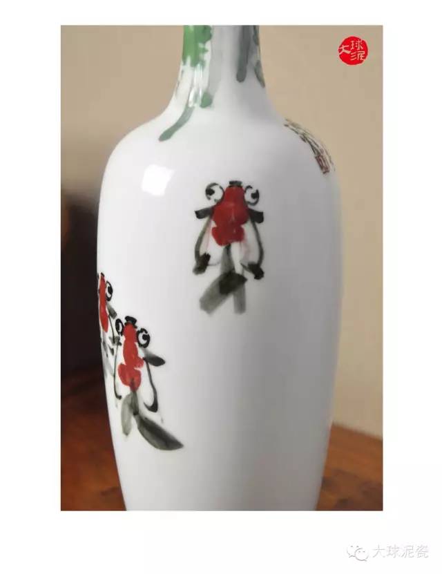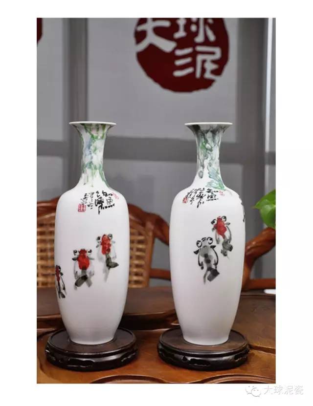 《知魚之樂》柳葉瓶,作者采用釉下彩技藝,以寫意手法在大球泥瓷瓶上繪畫魚兒力爭上游的情景。器形簡約優(yōu)雅,瓶身直挺,大氣而精致。這件藝術(shù)作品以粗線條展現(xiàn)金魚的形體本質(zhì),大膽而隨性,整體畫面又摒棄了任何輔助裝飾,回歸于魚的本身。點睛之筆,看似隨意而落,卻是神來之墨,意韻靈動。這些粗狂線條構(gòu)成的意象展示在大球泥瓷上,使人猶如品讀現(xiàn)代主義詩。 “子非魚,焉知魚之樂”出自《莊子.秋水》。該句流傳千古,具有深刻的哲學(xué)蘊(yùn)義。通常來說,它的意思主要是指人心永遠(yuǎn)是屬于個人的,一個人的快樂、悲傷只有自己才能真正感悟,外人即使再了解,也無法真正感同身受。這件大球泥瓷藝術(shù)品以此為題材,可謂妙韻天成,是由北方地產(chǎn)大亨特別定制,指定創(chuàng)作。