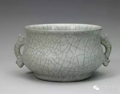 仿北宋官窯的瓷器為黑胎,也具有“紫口鐵足”。其胎色有黑、深灰、淺灰及土黃多種,其釉均為失透的乳濁釉,釉色以灰青為主。常見(jiàn)器物有爐、瓶、碗、盤(pán)、洗等,均質(zhì)地優(yōu)良,做工精細(xì),全為宮廷用瓷的式樣,與民窯瓷器大相徑庭。傳世哥窯瓷器不見(jiàn)于宋墓出土,其窯址也未發(fā)現(xiàn),故研究者普遍認(rèn)為傳世哥窯屬于宋代官辦瓷窯。