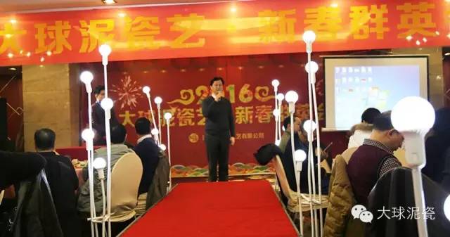 值此農(nóng)歷新年即將到來之際,大球泥瓷藝為感謝一路以來一直關(guān)心和支持我們的各位朋友,于2016年1月16日舉行《大球泥瓷藝·新春群英會》。原計(jì)劃舉辦大型新春團(tuán)拜會,但考慮到大家節(jié)前忙于工作,改為舉辦“新春群英會”,邀請了部分嘉賓,有政府相關(guān)廳局領(lǐng)導(dǎo)、工藝美術(shù)大師、陶瓷收藏家、各類媒體代表和各商會會長代表等百人參加。