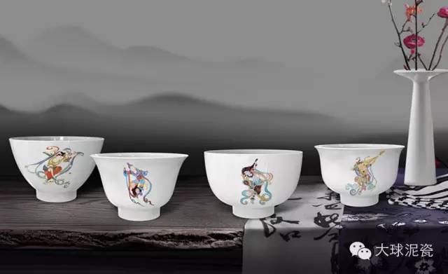 大球泥瓷藝創(chuàng)作的新品——《飛天》品茗杯一組4個,器型、畫面各異,造型規(guī)整優(yōu)美,是第一次在大球泥瓷上以飛天入畫,是將敦煌飛天藝術(shù)瑰寶與大球泥藝術(shù)瓷融合而成的全新的藝術(shù)表現(xiàn)形式。并且,此組品茗杯已申報外觀設(shè)計知識產(chǎn)權(quán),是大球泥瓷藝獨(dú)有的藝術(shù)財富。