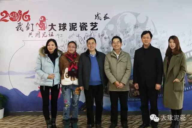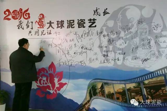 唐主任則表示,大球泥稀缺原料和大球泥高端藝術(shù)瓷是我們國家的特色文化產(chǎn)業(yè)重點(diǎn)項(xiàng)目。新的一年無論是從政策上,還是資金上,政府都將加大對(duì)大球泥瓷藝的扶持力度。期望大球泥瓷藝在2016能夠獲得更加輝煌的成績,他笑稱,今日在簽名墻上寫下的名字,將來便是他見證大球泥瓷藝成長的歷史證據(jù)!