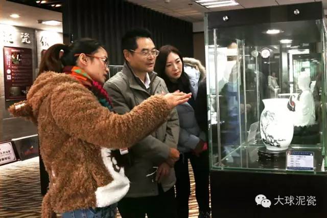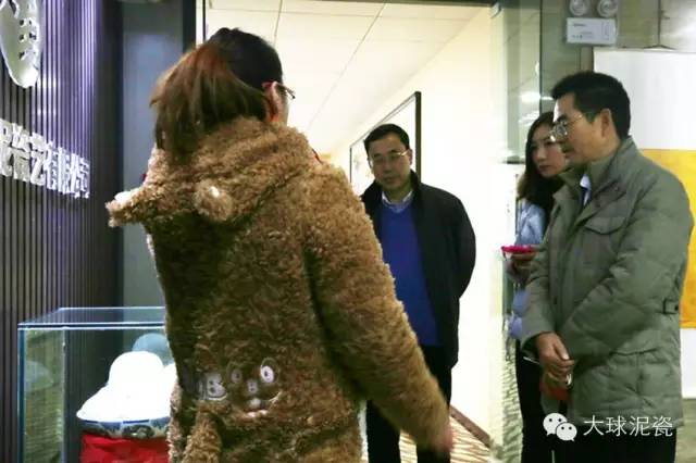 在公司張副總的帶領(lǐng)下,唐主任和劉董首先參觀了大球泥瓷精品展示廳。第一次見到大球泥瓷的劉董瞬間被激發(fā)起了強(qiáng)烈的好奇心,一邊認(rèn)真地觀賞瓷器,一邊仔細(xì)地詢問著關(guān)于大球泥原料的研究開發(fā),大球泥瓷的燒制工藝和公司未來的發(fā)展規(guī)劃等問題。