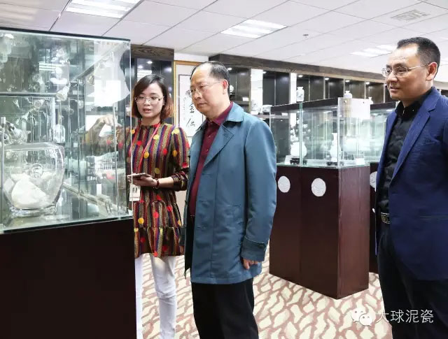 楊部長一行首先來到展示廳,仔細(xì)聽取了公司副總經(jīng)理張萍對大球泥原料的形成、發(fā)現(xiàn)、存量以及大球泥瓷特點(diǎn)的介紹,并對大球泥瓷的經(jīng)典作品逐一進(jìn)行了講解。在會議室,公司董事長滕召華從大球泥原料的搶救性保護(hù)、公司的成立、研發(fā)利用、專利技術(shù)、宣傳推廣、未來規(guī)劃以及需要解決研發(fā)中心用地問題等幾個方面做了匯報(bào)。