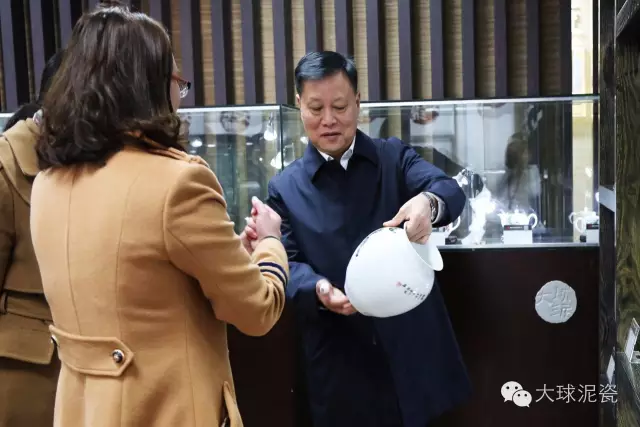 大球泥瓷藝副總經(jīng)理張萍向龍副部長(zhǎng)詳細(xì)介紹了大球泥的形成、開采、存世量以及大球泥瓷獨(dú)有的99道制作工藝流程。龍副部長(zhǎng)笑著說(shuō):“抽時(shí)間一定到大球泥瓷的生產(chǎn)基地做一個(gè)實(shí)地考察,看看這些作品都是怎么從泥變成瓷的!遍Z麗處長(zhǎng)也表示,大球泥瓷確實(shí)不同一般,讓人眼前一亮,而且每一件作品是純手工手繪,很有特色。