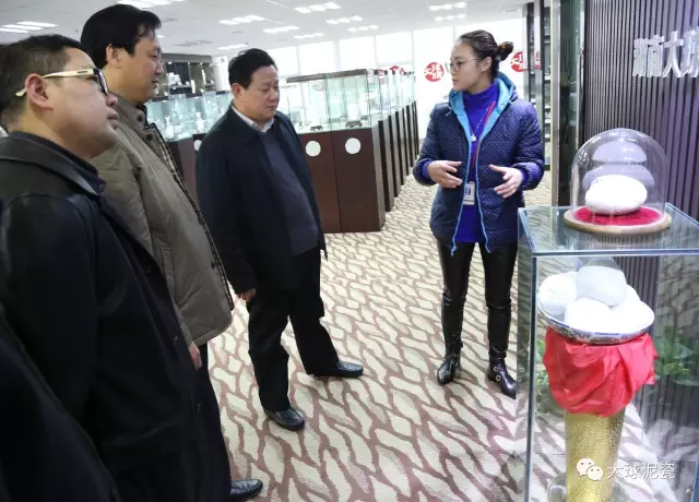 鄢副廳長(zhǎng)一行風(fēng)塵仆仆,興致勃勃,直接來到大球泥瓷展廳,仔細(xì)聽取了公司副總經(jīng)理張萍對(duì)大球泥原料的形成、發(fā)現(xiàn)、存量以及大球泥瓷各種器型、工藝、畫面特點(diǎn)的介紹,重點(diǎn)對(duì)近兩年來公司開發(fā)出的經(jīng)典瓷雕作品逐一進(jìn)行了解。在座談會(huì)上,公司董事長(zhǎng)滕召華從大球泥原料的搶救性保護(hù)、公司的成立、研發(fā)利用、知識(shí)產(chǎn)權(quán)保護(hù)、宣傳推廣、慈善文化以及嘗試開拓國(guó)際市場(chǎng),打造中國(guó)藝術(shù)陶瓷品牌等幾個(gè)方面做了詳實(shí)匯報(bào)。