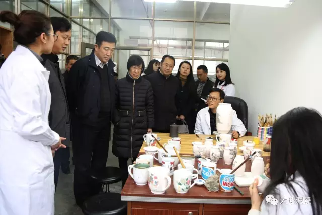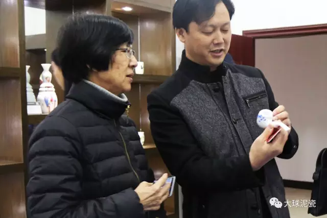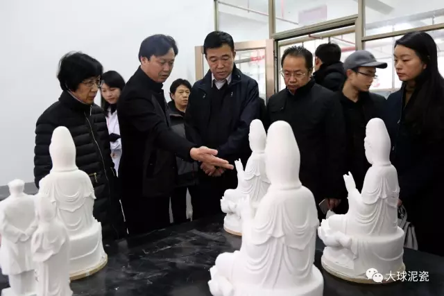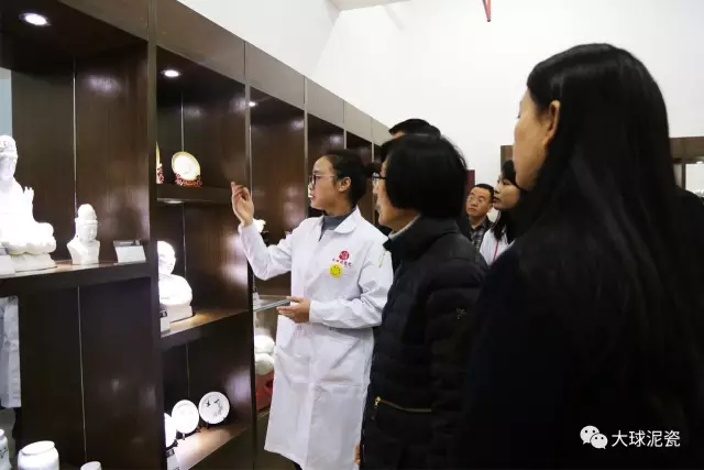 耿焱教授一行受到公司董事長滕召華的熱情歡迎,先后隨引一一參觀了大球泥瓷大師原創(chuàng)工作室、瓷雕創(chuàng)作室、大球泥煉制區(qū)、質量檢驗區(qū)、精品展廳等,并詳細了解了公司的特色原料及研發(fā)、創(chuàng)作情況。