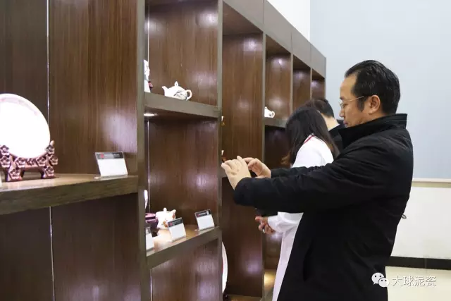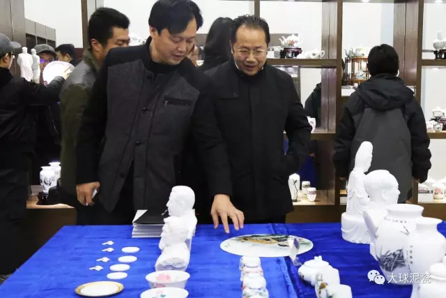精品展廳內,聶方紅部長對精細雅致、潤白通透的大球泥瓷嘖嘖稱贊,并拿出相機拍下眾多美輪美奐的作品。