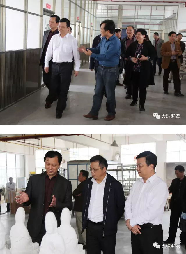 4月7日,湖南工業(yè)大學(xué)校長(zhǎng)譚益民、株洲市人民政府督導(dǎo)室主任夏立威等一行在醴陵市委書記胡湘之的陪同下蒞臨大球泥瓷藝(醴陵)生產(chǎn)基地開展調(diào)研。