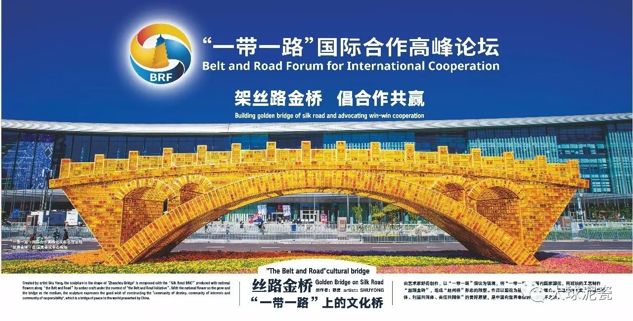 《絲路金橋》是當(dāng)代著名藝術(shù)家舒勇以國家戰(zhàn)略“一帶一路”為創(chuàng)作語境,使用世界通用文化符號“橋”為創(chuàng)作元素,融合中國文明與世界文明的大型互動景觀圖騰雕塑作品。