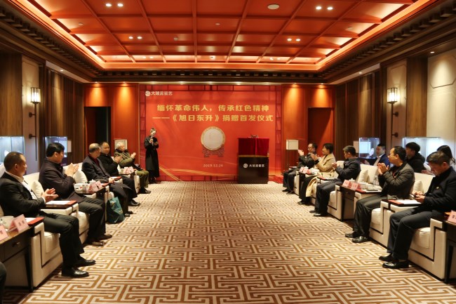 12 月 26 日上午,緬懷革命偉人、傳承紅色精神暨《旭日東升》捐贈儀式在韶山舉行。省人大原副主任肖雅瑜、省軍區(qū)原副政委黃祖示、省工商聯(lián)秘書長祝擁軍、長沙市委宣傳部副部長郭潤葵、韶山市委常委宣傳部長李先金、一級戰(zhàn)斗英雄羅振明等出席了捐贈活動。