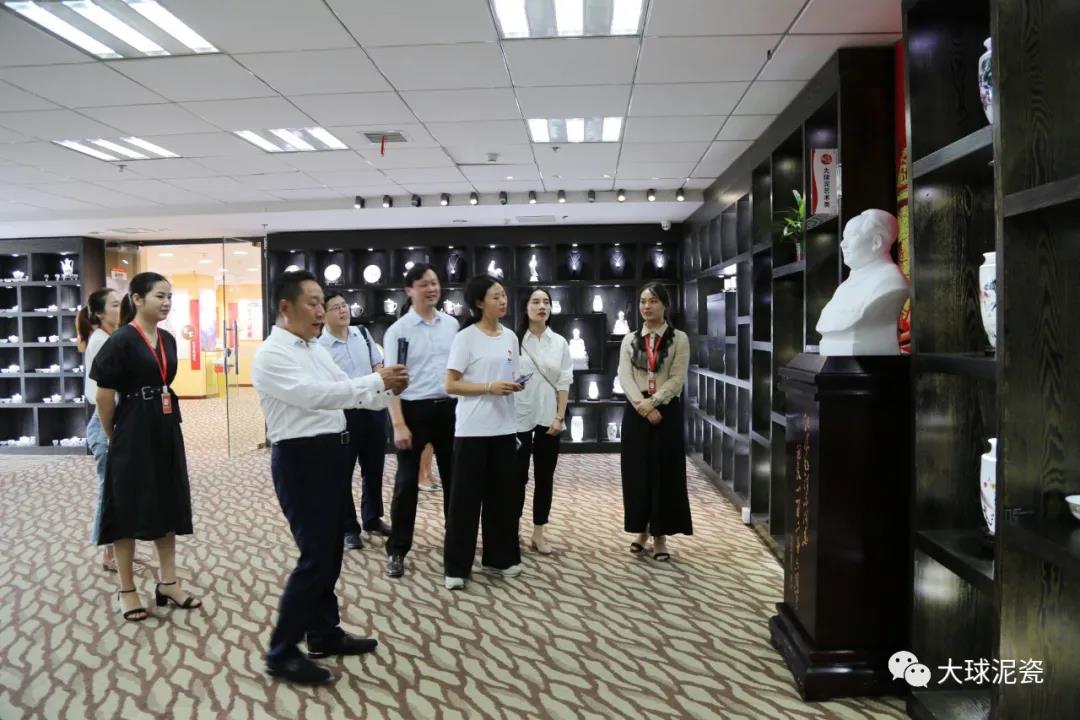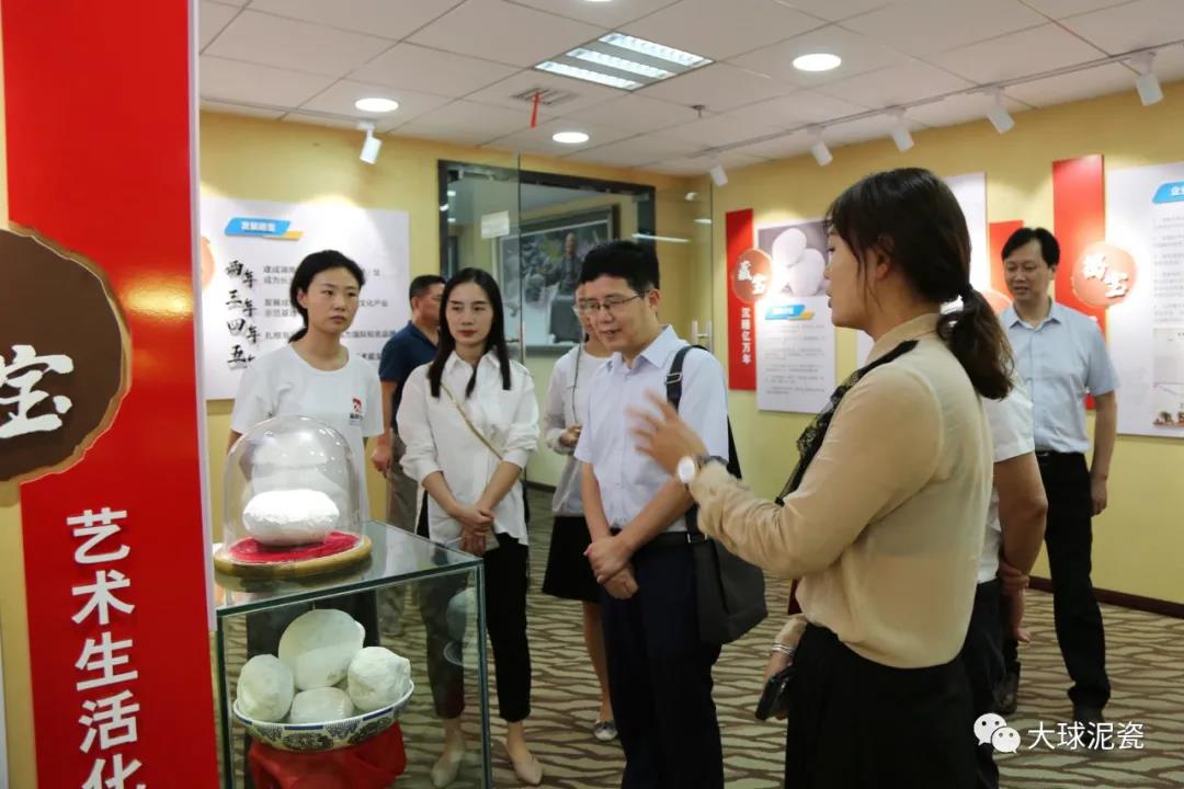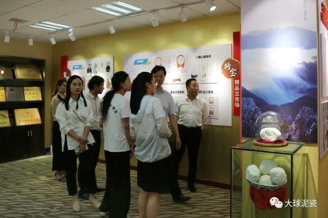調(diào)研組一行首先參觀了公司精品展示廳,副總經(jīng)理姚衛(wèi)作專業(yè)講解。大家親眼目睹這種被業(yè)內(nèi)稱為“泥黃金”的雪白球狀,就是當年承造“毛瓷”的神奇原料時,深深為滕總的遠見卓識所折服?吹搅宅槤M目的高端藝術(shù)瓷,或駐足欣賞,或手機拍照,或在燈光下進行比較,親身感受大球泥瓷與眾不同的“白、潤、透”藝術(shù)效果。在姚總的引導(dǎo)下,調(diào)研組成員仔細欣賞每個作品,了解其蘊含的獨特匠心故事及文化底蘊,感受陶瓷文化的獨特魅力。“大球泥,人間璞玉”,王鵬先生四年前就送了一句出彩的廣告詞。