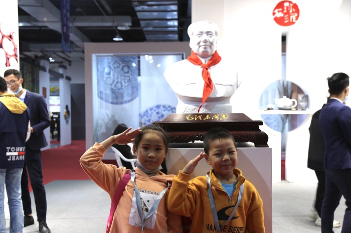 “這個(gè)人物浮雕杯有亮點(diǎn)”!稙槿嗣穹⻊(wù)》浮雕杯成為本次展會(huì)爆款,這一工藝技術(shù)的創(chuàng)新,把紅色文化和藝術(shù)生活化做到了有機(jī)統(tǒng)一。