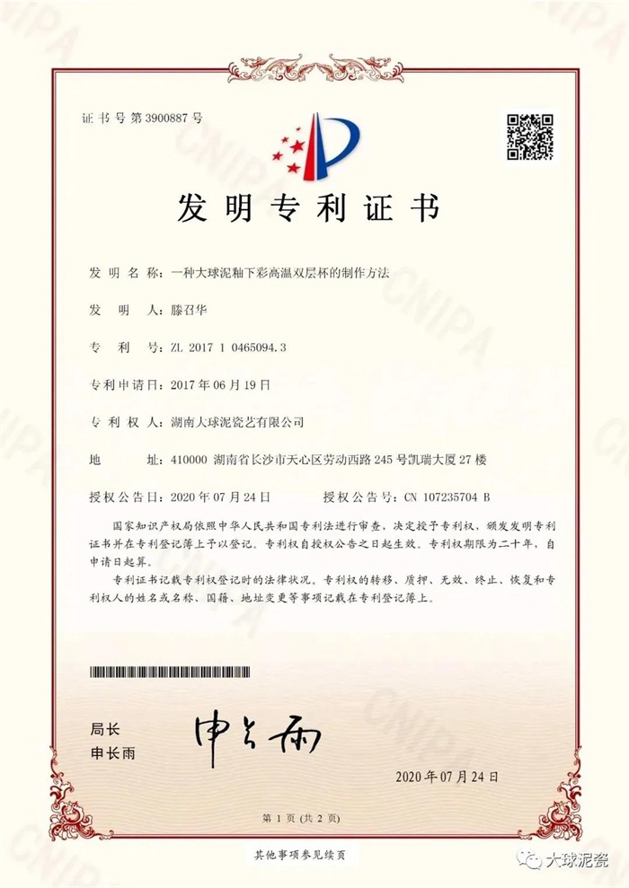 公司作為我國高端藝術(shù)陶瓷引領(lǐng)者,在陶瓷材料研發(fā)、工藝技術(shù)改革、作品融合創(chuàng)新、制訂行業(yè)標(biāo)準(zhǔn)等方面一直在努力,也非常注重知識(shí)產(chǎn)權(quán)的維護(hù),營造行業(yè)良好的市場環(huán)境。2020年醴陵某藝術(shù)瓷公司被判賠我公司25萬余元,另外一家陶瓷公司的侵權(quán)行為公司正在維權(quán)。