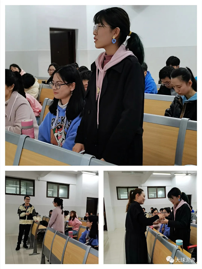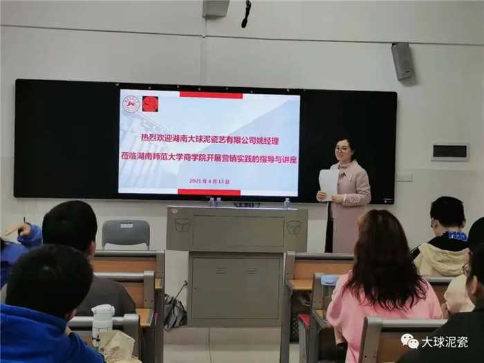 在商學(xué)院楊爽老師隆重介紹完大球泥瓷藝公司和姚總后,同學(xué)們用熱烈的掌聲歡迎講師上臺(tái)。