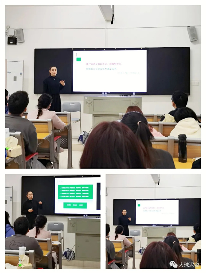 整堂課程下來(lái),學(xué)生掌聲不斷。同學(xué)們都表示,這樣的課程太精彩了,希望以后還有機(jī)會(huì)聽姚總的課。同學(xué)們說(shuō):“我們不僅被姚總對(duì)營(yíng)銷事業(yè)的熱愛所感染,還學(xué)到了很多課本上學(xué)不到的銷售技巧。并且通過姚總的講解,我們對(duì)不同行業(yè)有了更深入的理解與認(rèn)識(shí)”。甚至還有同學(xué)表示,畢業(yè)之后希望和姚總一樣,能夠進(jìn)入到高端藝術(shù)陶瓷領(lǐng)域,弘揚(yáng)國(guó)瓷文化!