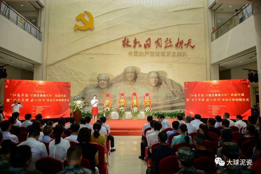 今天上午,“紅色中國(guó):百館百展頌百年”聯(lián)展開(kāi)展暨“百年榮耀·薪火相傳”革命文物捐贈(zèng)儀式在湖南黨史陳列館舉行。在現(xiàn)場(chǎng),大球泥瓷藝捐贈(zèng)了《千秋偉業(yè)》之《偉大遠(yuǎn)征》大型高溫浮雕瓷板畫(huà)。