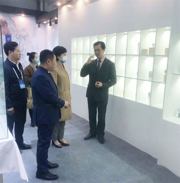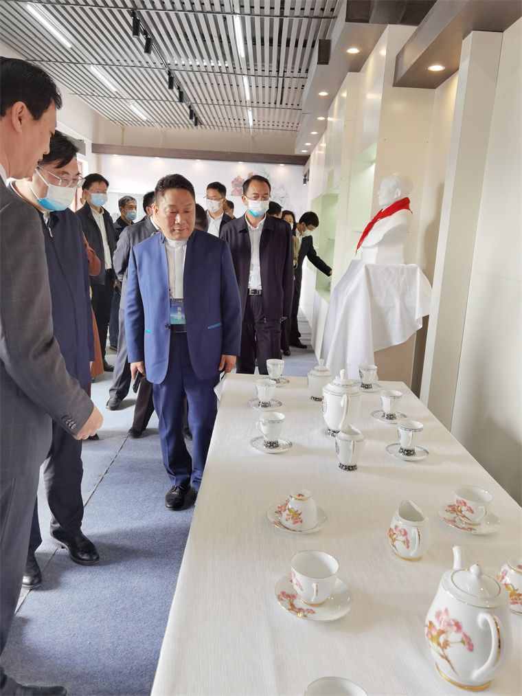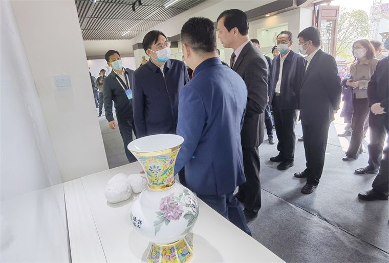 國家文化和旅游部部長胡和平一行到湘瓷館巡展,董事長滕召華介紹了湖南陶瓷的發(fā)展歷程及獨有特色,講解了“毛瓷”制作技術(shù)及稀缺大球泥原料,匯報了非遺傳承及融合創(chuàng)新取得成就。胡部長認(rèn)為釉下五彩瓷色彩清新、畫面豐富,贊譽大球泥瓷設(shè)計新穎、白潤通透,指示湖南陶瓷要傳承融合、守正創(chuàng)新。