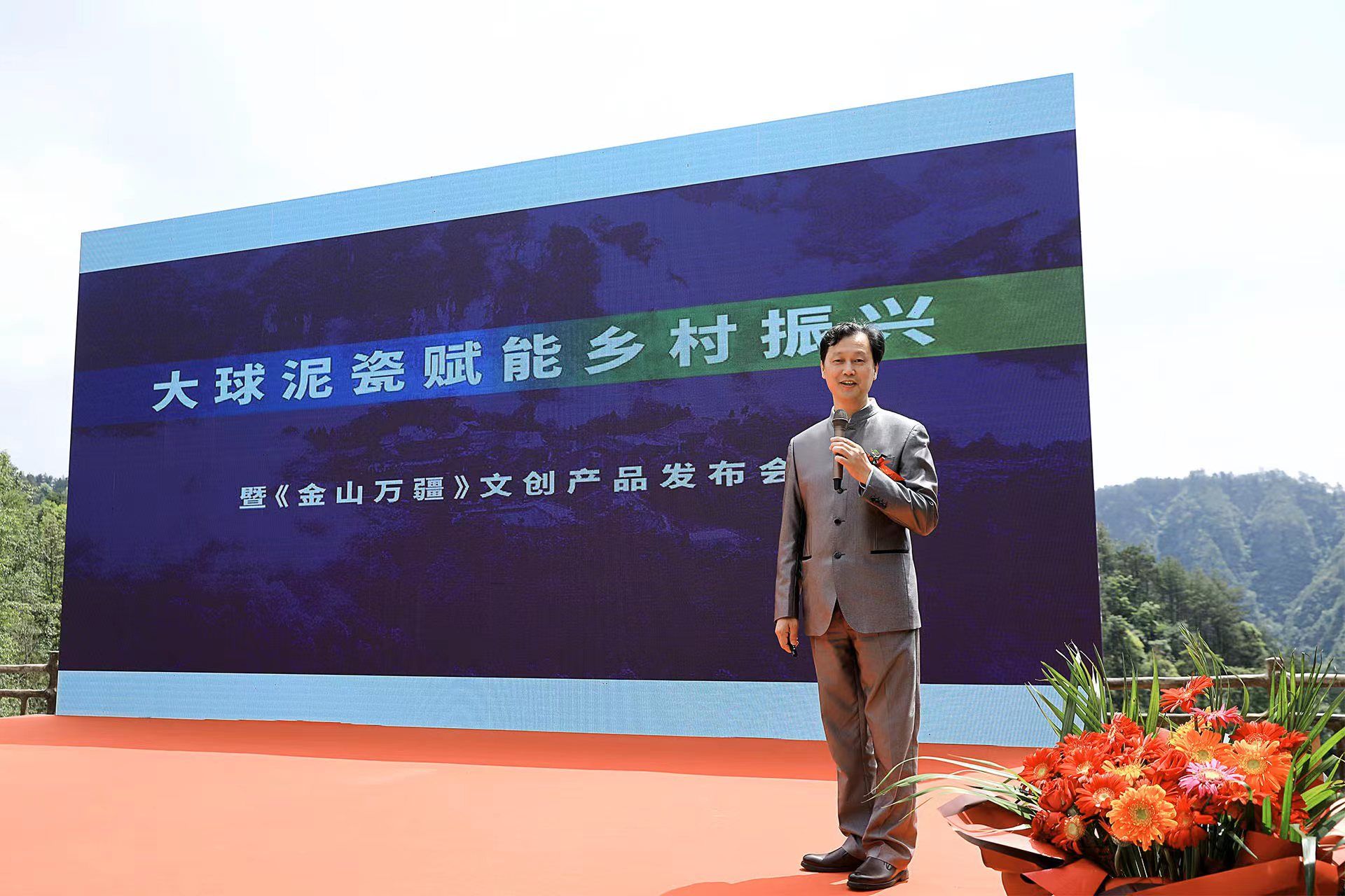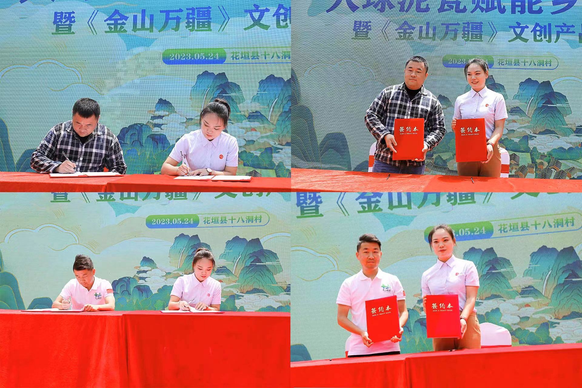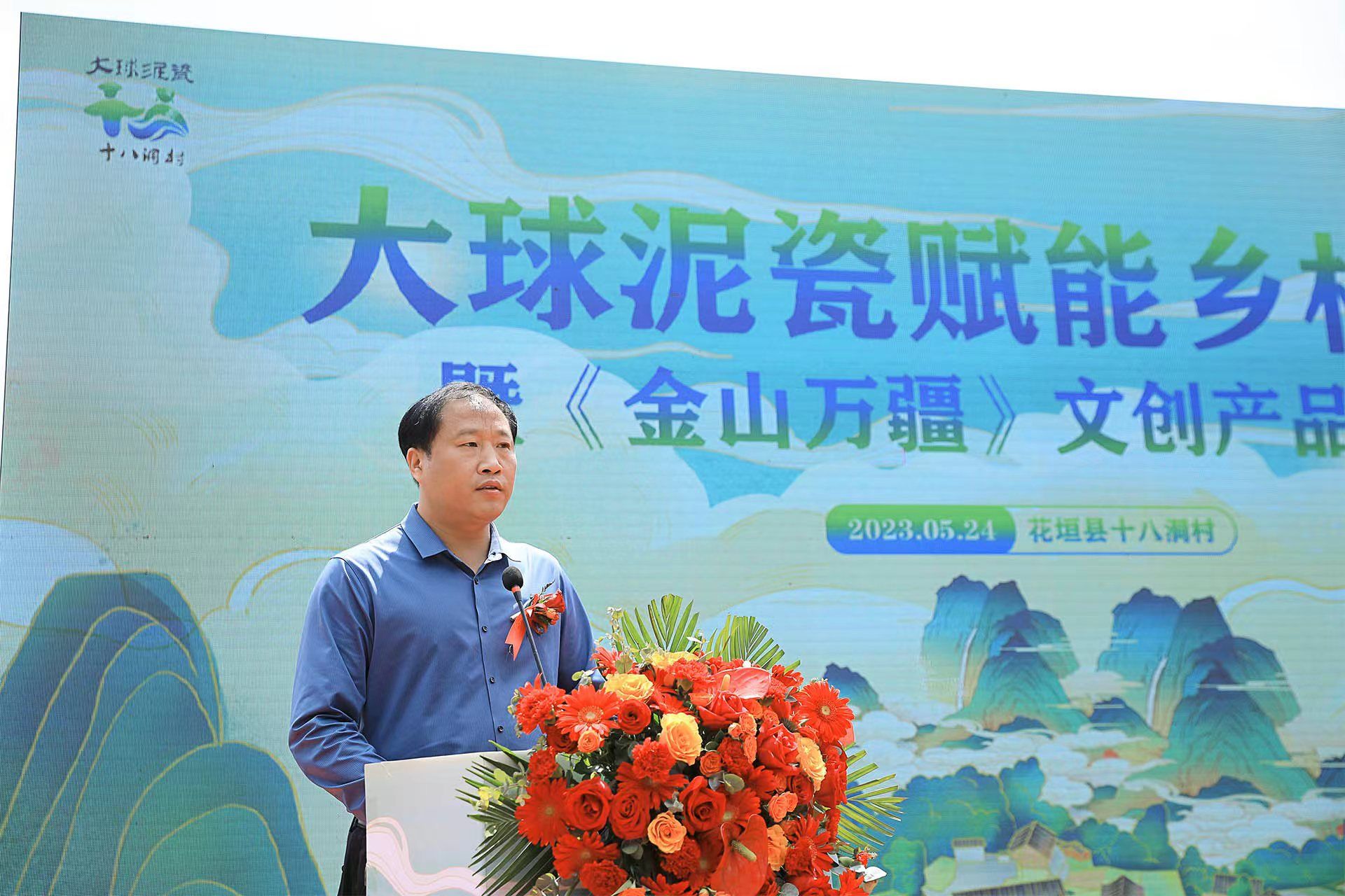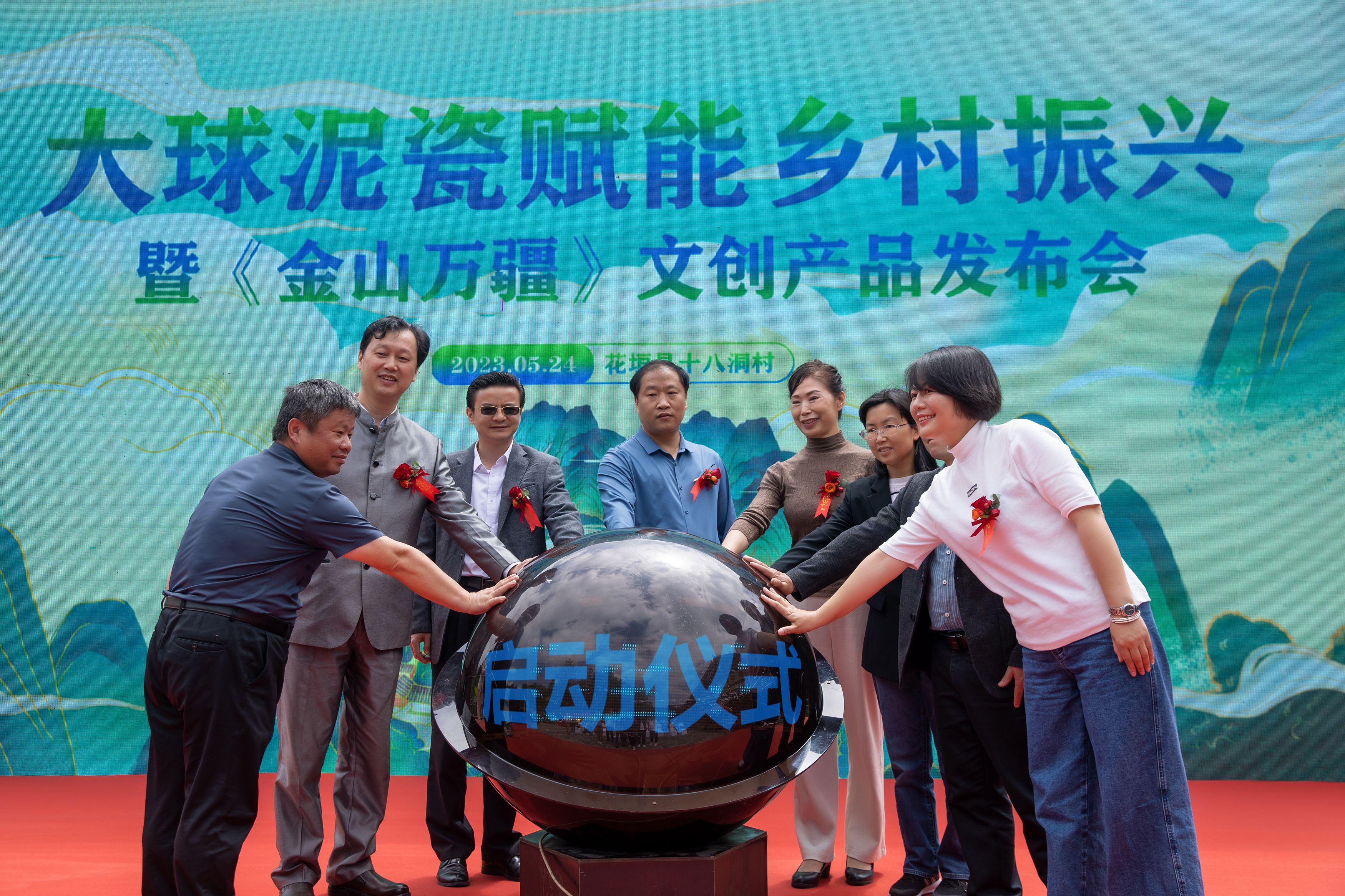 2023 年 5 月 24 日上午,大球泥瓷賦能鄉(xiāng)村振興暨《金山萬(wàn)疆》文創(chuàng)新品發(fā)布會(huì)在花垣縣十八洞村村部舉行。省文旅廳三級(jí)調(diào)研員劉彬、長(zhǎng)沙市委宣傳部四級(jí)調(diào)研員何小紅、湘西州文旅廣局副局長(zhǎng)呂冠軍、花垣縣委常委、宣傳部長(zhǎng)滕召帆、十八洞村委會(huì)副主任、經(jīng)濟(jì)聯(lián)合社理事長(zhǎng)龍書(shū)優(yōu)等出席。