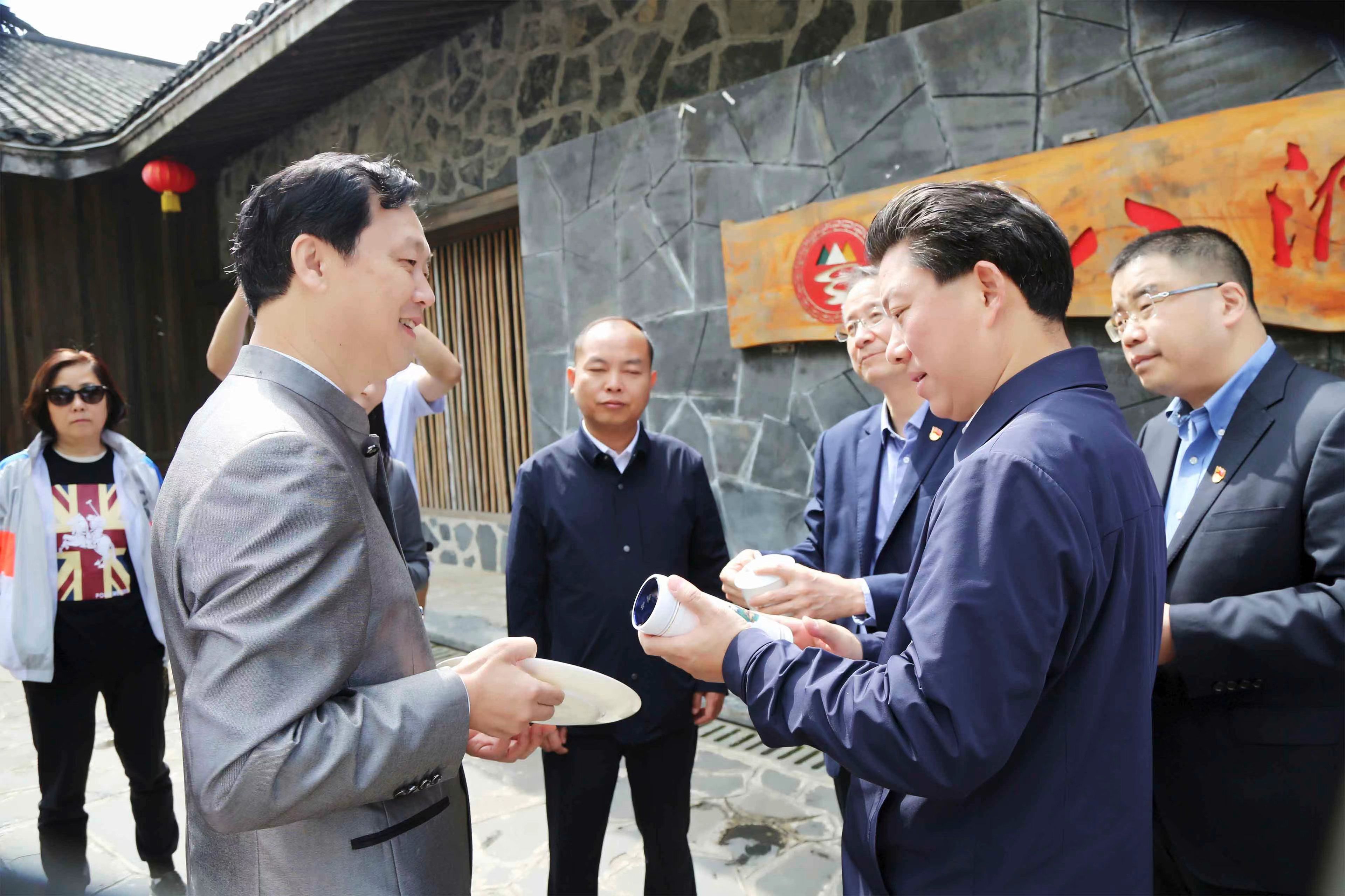 新品發(fā)布現(xiàn)場(chǎng),湘西州委副書(shū)記、花垣縣委書(shū)記廖良輝正好陪同中國(guó)交通銀行總行領(lǐng)導(dǎo),他拿起《金山萬(wàn)疆》保溫杯興致勃勃地向北京客人作介紹,講陶瓷工藝、設(shè)計(jì)理念、合作模式、雙品牌運(yùn)營(yíng),并將現(xiàn)場(chǎng)銷(xiāo)售編號(hào)0001號(hào)的《金山萬(wàn)疆》杯贈(zèng)給了北京總行領(lǐng)導(dǎo)。