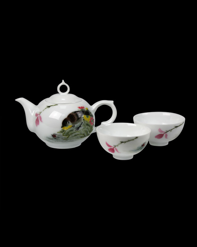 作品名稱:《一枝紅葉秀秋霜》一壺兩杯